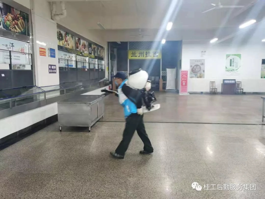 新型冠状病毒感染肺炎疫情爆发以来,后勤服务集团认真贯彻落实习近平总书记重要指示和中央、自治区决策部署,严格按照桂林市新型冠状病毒肺炎防控通知和学校新型冠状病毒肺炎疫情防控工作方案等文件要求,第一时间成立后勤防疫工作小组,制定后勤疫情防控工作方案,对各项防控任务层层分解,确保各项措施落实到位,坚持“疫情就是命令,防控就是责任”的使命,勇于担当,全力以赴打好打赢疫情防控阻击战。
