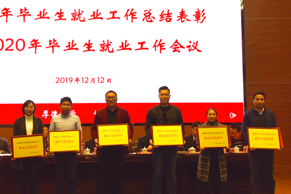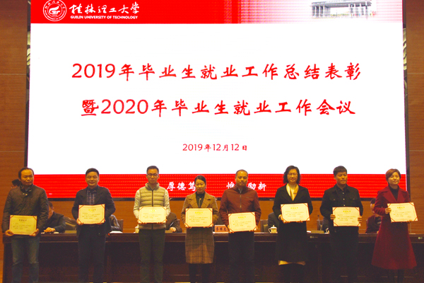 会上,王赣华宣读了学校对2019年毕业生就业工作先进集体和先进个人的表彰决定。化学与生物工程学院、理学院、机械与控制工程学院、土木与建筑工程学院、商学院、南宁分校等6个单位荣获“2019年毕业生就业工作先进集体”荣誉称号;公共管理与传媒学院、地球科学学院、材料科学与工程学院等3个单位荣获“2019年毕业生就业工作就业进步奖”荣誉称号“;地球科学学院、理学院、测绘地理信息学院等3个单位荣获“2019年毕业生就业工作就业质量奖”荣誉称号;杨金豹等87位同志荣获“2019年毕业生就业工作先进个人”荣誉称号。出席会议的校领导为获奖单位和个人代表颁奖。