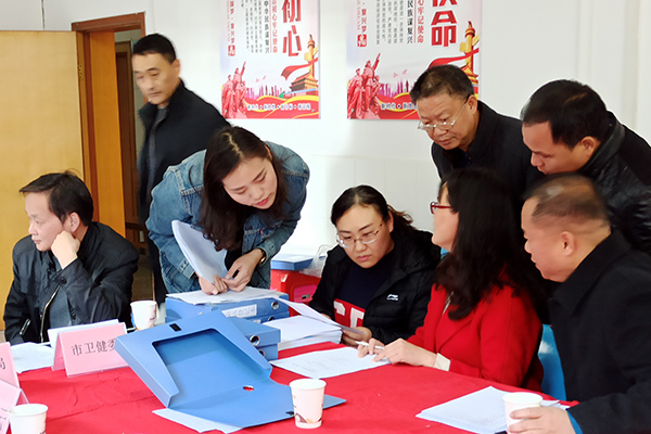 督察组查看结核病防控相关制度及资料