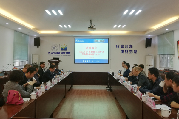 11月7日下午,自治区教育厅巡视员唐耀华率部分投资基金代表到beat365就大学生科技创业大赛工作进行调研座谈。调研座谈会在屏风校区大学生创新创业基地三楼召开,学校党委副书记、副校长吴志强,校团委、招就处、科技处等部门相关负责人,部分创业项目负责人及指导教师参加了座谈会。