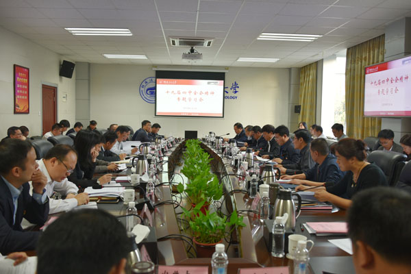 李国忠书记强调,当今世界正经历百年未有之大变局,我国正处于实现中华民族伟大复兴关键时期。全校各级党组织要更加紧密地团结在以习近平同志为核心的党中央周围,深入学习贯彻党的十九届四中全会精神,深刻领会坚持和完善中国特色社会主义制度、推进国家治理体系和治理能力现代化的总体目标。要把学习贯彻党的十九届四中全会精神作为当前的重要政治任务,将学习贯彻工作与“不忘初心、牢记使命”主题教育结合起来,与学校内涵发展结合起来,推进学校治理体系和治理能力现代化,加快建设特色鲜明的高水平教学研究型理工大学。