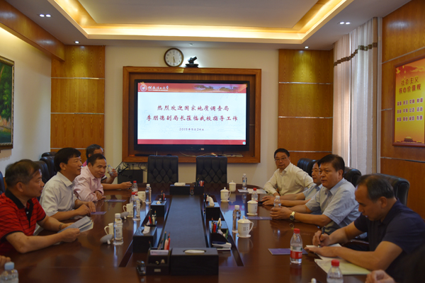 9月24日下午,中国地质调查局李朋德副局长及该局武汉地质调查中心、岩溶地质研究所、办公室及科技部主要负责人一行5人莅临beat365调研指导。学校校长解庆林、副校长陈学军、副校长王玫、副校长周国清及相关部门主要负责人等陪同调研。