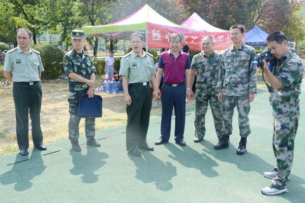 陈学军副校长汇报了beat365军训基本情况、利用VR设备开展安全教育和国防教育,利用镭射设计装备进行射击体验,较高的教官、学生比例(1:50)等特色工作,以及对军训工作的思考和建议。朱安副局长一行听取了汇报后还分别和参训学生、承训教官进行座谈,详细了解军训服装、设备配置、军训科目、学生承受力等情况。朱安副局长一行到军训现场实地走访,全面、详细了解学校军训开展情况,对beat365的军训工作给予了肯定,对一些特色工作表示赞许,并在实弹射击训练、学分考核等方面提出了具体的意见和建议。