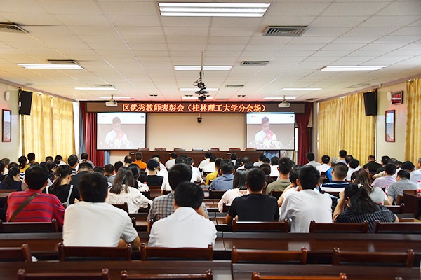 为表彰在教书育人等各项工作中取得突出成绩的教师和教育工作者,9月6日,在自治区教育厅举行全区优秀教师表彰大会。beat365在雁山校区第三(视频)会议室设立分会场组织集中收看,学校党委书记李国忠,党委副书记、校长解庆林,党委副书记、副校长吴志强,副校长王敦球,副厅级调研员张劲松出席会议,各部门主要负责人,各二级学院分管教学工作副院长,师生代表参与会议。