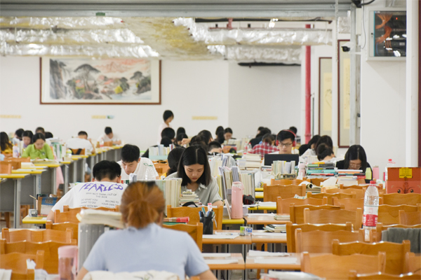 开学第一天,图书馆、自习室里满是埋头苦读的身影。晨光中,随处可见迎着朝霞早读的同学,途经图书馆门前、教学楼走廊,都会听到朗朗的读书声。即使在等待图书馆开门的这一小段时间里,也有同学拿出书本,低声诵读。