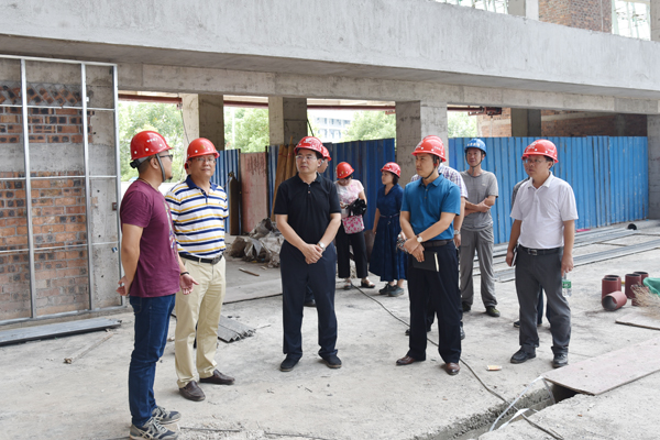 9月3日,学校党委书记李国忠,副校长王敦球在党办校办、资产管理处、发展规划与教学质量监控中心、基建后勤处、后勤集团负责人的陪同下,深入雁山校区工程实践与创新中心、综合体育馆施工现场检查指导工作。