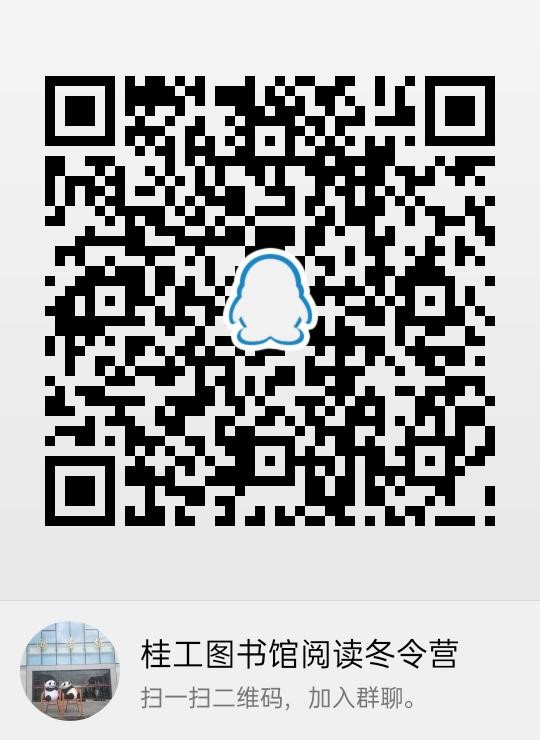 寒假读书活动报名方式:加入“桂工图书馆阅读冬令营”QQ群,群号:623163046,即视为报名成功。扫描下方二维码即可加入活动群。