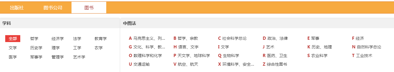 4.2.1 图书分会场:根据图书的中图法分类及学科分类展示各类图书,直接点击分类即可进入选书界面。