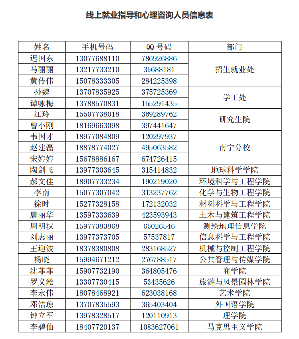 咨询者可通过QQ、邮件、电话在线咨询辅导教师