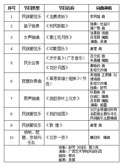为进一步促进校园文化建设,传承民族优秀文化,提升青年学生民族文化自信,加强校际交流,beat365特邀广西艺术学院于2019年4月16日晚19:30,在雁山校区综合体育馆,举行大型民族管弦乐《祖国颂歌》——广西艺术学院民族乐团走进beat365官方网站专场音乐会活动。