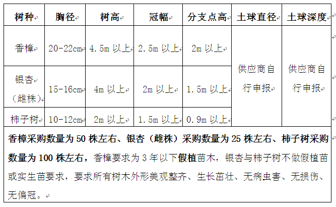 六、供货商资格要求:具备城市园林绿化树木销售、运输资质,并在人员、设备、资金等方面具有相应条件。