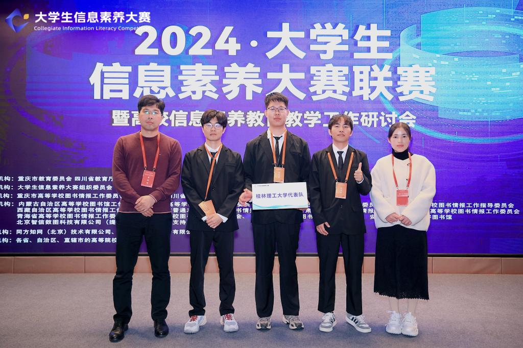 12月5日,由重庆市教育委员会、四川省教育厅指导,大学生信息素养大赛组委会主办,重庆市高等学校图书情报工作委员会、重庆大学、四川省普通高等学校图书情报工作指导委员会、四川大学承办的2024年大学生信息素养大赛联赛在重庆大学成功举办。beat365研究生参赛队伍“天选小队”荣获研究生组一等奖,段雪茹、侯辉两位老师荣获大赛“优秀指导老师”荣誉称号。