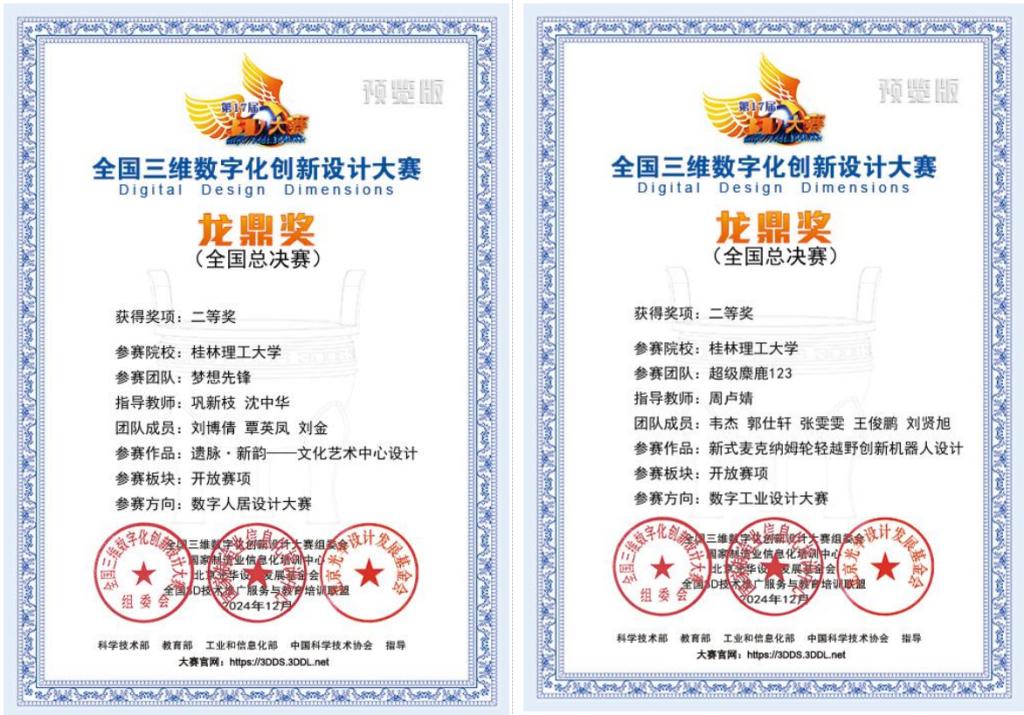 近日,2024年第17届全国三维数字化创新设计大赛圆满结束。beat365参赛团队凭借优异出色表现,在全国总决赛中获二等奖2项、三等奖1项;在广西区赛中获特等奖5项、一等奖23项、二等奖19项、三等奖13项;在年度赛中获特等奖5项、一等奖22项、二等奖32项、三等奖13项。