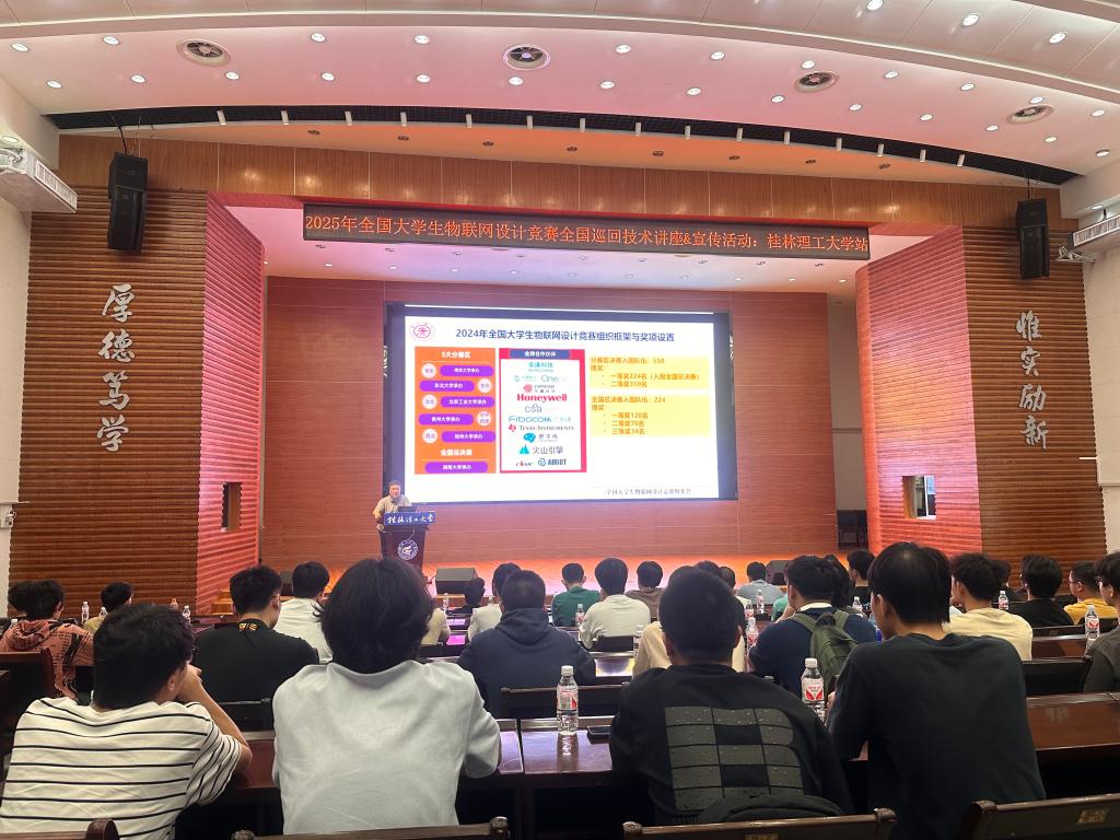 5月22日,2025年全国大学生物联网设计竞赛全国巡回技术讲座及宣传活动(beat365官方网站站)在学校举行。本次活动吸引了来自上海交通大学等国内顶尖高校学者、火山引擎科技有限公司等头部科技企业技术专家,以及广西区内高校师生代表共计150余人齐聚一堂,共同探讨物联网前沿技术发展与创新人才培养新范式。