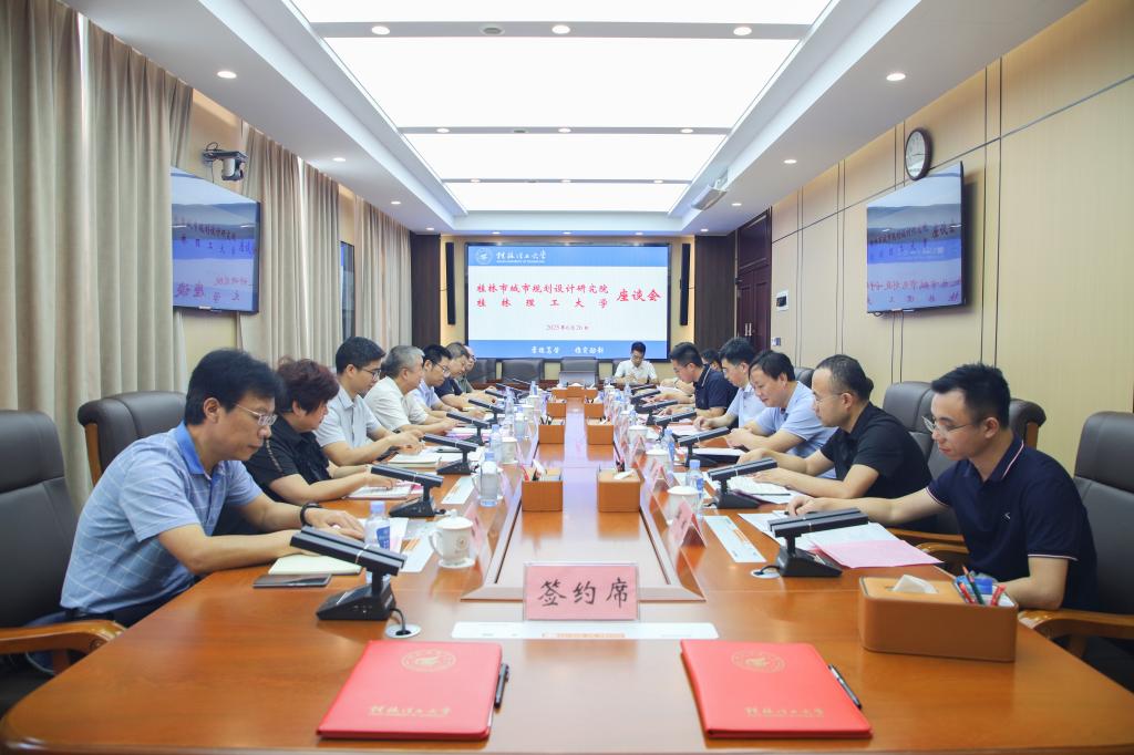 6月26日上午,桂林市城市规划设计研究院党总支书记、院长蒋颖康一行来访beat365。双方在屏风校区办公楼第一会议室开展座谈,就签署相关合作协议事宜进行交流。
