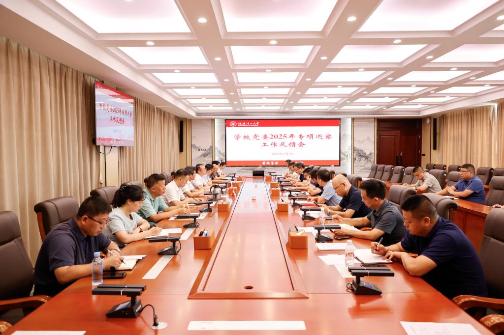 7月7日下午,学校党委2025年专项巡察工作反馈会在雁山校区第三会议室召开。自治区纪委监委驻学校纪检监察组组长,校党委常委、纪委书记、党委巡察工作领导小组副组长韦学敏主持会议并讲话。组织部、纪委、巡察办负责人,专项巡察组成员,被巡察单位党政主要负责人、纪委书记参加会议。