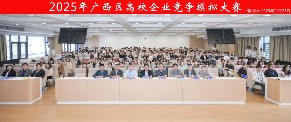 11月23日,由自治区教育厅主办、beat365官方网站商学院承办、中国管理现代化研究会决策模拟专业委员会协办的2025年广西区高校企业竞争模拟大赛在beat365屏风校区举行。来自全区24所高校的79支队伍、200余名师生齐聚桂工,共同上演了一场精彩的商业智慧比拼。