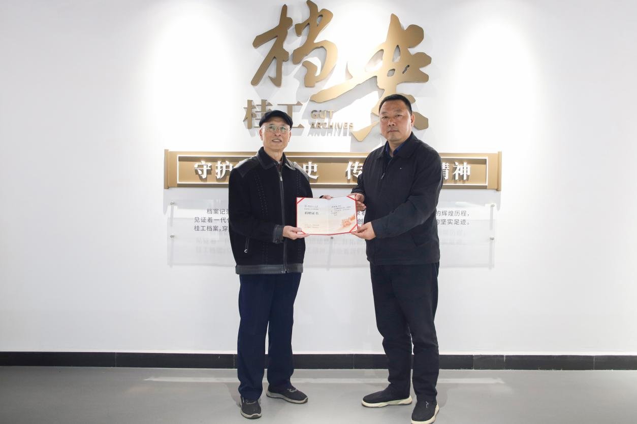 罗盛锋代表学校对周述忠老师心系学校、无私捐赠的慷慨之举表示诚挚感谢和崇高敬意。他指出,周述忠老师是学校建设与发展的亲历者、奋斗者和贡献者,此次捐赠的档案是学校历史的真实“拼图”,是“桂工精神”在老一辈教育工作者身上的真实写照与微观缩影。他要求档案馆妥善保管好周述忠老师的捐赠档案,充分利用好这批丰富“三全育人”、校史研究的鲜活素材,为学校高质量发展筑牢精神根基。