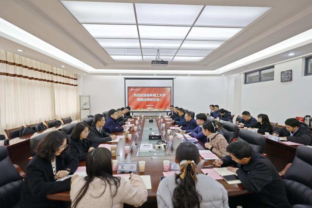 1月16日,学校党委常委、副校长王磊率队赴广西科技大学就“本科人才培养及其教学改革”开展专题调研交流。广西科技大学党委常委、副校长李健热情接待了王磊一行。