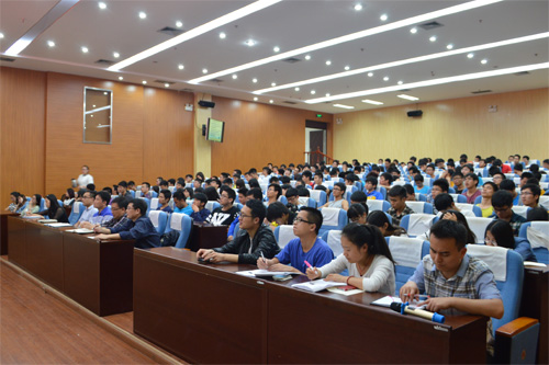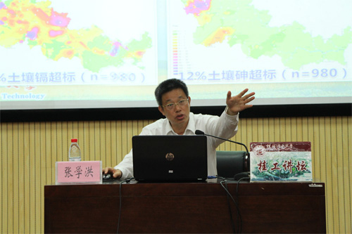 张书记的报告主要分为三个部分:水资源现状,水污染现状及水污染的来源。首先,张书记利用图片显示、数据分析,引出全球淡水资源的分布情况,通过中外对比展示了中国水资源紧缺且分布不均匀的基本现状;随后,张书记结合自身所研究的一系列与水环境相关的项目与课题,以广西河池等地的镉污染为例,指出水污染现象的严峻程度,强调了水污染对我们生活造成严重的负面影响;最后,张书记从水资源的自然污染、人为污染等方面阐述了水污染的来源,阐述了我国、我区和桂林市未来水污染治理中污水处理的工作目标,同时号召大家进一步增强节约用水意识和环保意识,以实际行动保护水资源。张书记的报告具有大量客观的实际案例和数据,条理清晰,严谨务实,说理透彻,并且张书记的演讲风格幽默风趣,深入浅出,现场气氛非常活跃,台下的师生们不断爆发会意的笑声和热烈的掌声。讲座结束后张书记还亲切地和现场师生进行了交流互动。