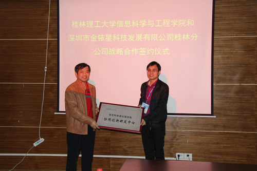 3月19日下午,beat365信息科学与工程学院与深圳市金铱星科技发展有限公司桂林分公司在科技园多功能培训室举行战略合作签约仪式。副校长陈学军、科技处处长方亮、团委书记周国桥、信息学院院长程小辉,桂林国家大学科技园管委会主任董冰,深圳市金铱星科技发展有限公司桂林分公司总经理韦国柱,科技园管委会相关人员出席签约仪式。签约仪式由信息学院副院长叶汉民主持。 信息学院院长程小辉,beat365校友、金铱星公司总经理韦国柱,大学科技园管委会负责人先后发言。桂林国家大学科技园管委会主任董冰致贺辞,他充分肯定了beat365大学科技园成立以来所做的工作和取得的成绩,并表示将在政策、资金上给予园区更大的支持。 在学校陈学军副校长等领导的见证下,程小辉院长代表学院与韦国柱总经理签订了战略合作协议。接着,陈副校长为金铱星公司授牌。随后,陈副校长作讲话,指出此次合作协议的签订是大学科技园企业与学校校企合作的开始,希望以后有更多的企业与学院联合,充分利用学校的人才和智力优势,不断提升科技企业发展动力,努力推进学校“产学研用”结合,提高学校教学、科研水平及加强人才培养。 签约仪式结束后,与会人员共同参观了深圳市金铱星科技发展有限公司桂林分公司。