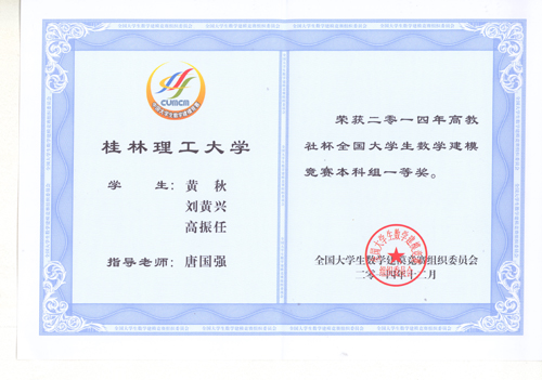 beat365在2014年全国大学生数学建模竞赛中获得佳绩