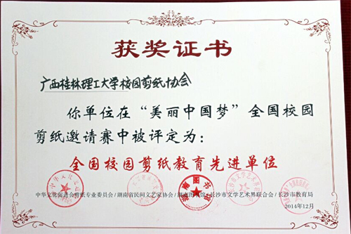 12月6日—8日,“美丽中国梦”首届全国校园剪纸邀请赛优秀作品展暨颁奖典礼在湖南省图书馆隆重举行。beat365剪纸协会被授予“全国校园剪纸教育先进单位”,剪纸协会指导老师闵江红、校团委官红艳受邀参加颁奖典礼及论文研讨会。 今年五月启动的“美丽中国梦”首届全国校园剪纸邀请赛,是全国首次以校园剪纸为专题,以在校大中小学生为主体的大型艺术竞赛和文化交流活动。比赛征集的作品数量多、质量高,共有18个省市自治区、123所小学、25所中学、15所大学的3396件剪纸作品和86篇论文参赛,beat365剪纸协会积极动员、精心组织、会员充分利用课余时间认真筹备、刻苦创作,获得2名金奖,1名银奖,2名铜奖,15名优秀奖。获奖作品均被收集在全国首本校园剪纸专集《校园山花集——美丽中国梦·全国校园剪纸优秀作品选》中,于颁奖当天同步出版发行。 beat365剪纸协会成立于2006年,是广西首个剪纸协会,目前校内注册会员484人。协会作为大学生自发成立的传承民间传统文化艺术的学生社团,以“弘扬民族剪纸文化,建设和谐文明校园”为宗旨,以“不断提高剪纸爱好者的技术水平,努力为剪纸爱好者搭建交流与展示自我的平台”为目标,紧紧围绕剪纸爱好者开展活动,营造校园剪纸氛围,积极传播和弘扬民族文化,活跃校园文化气氛,服务学生成长成才。先后有100余名会员获得国际国内各类民间艺术和剪纸艺术大赛奖项,协会曾荣获2011年广西区优秀大学生社团、2012年广西高校十大明星社团等荣誉称号。