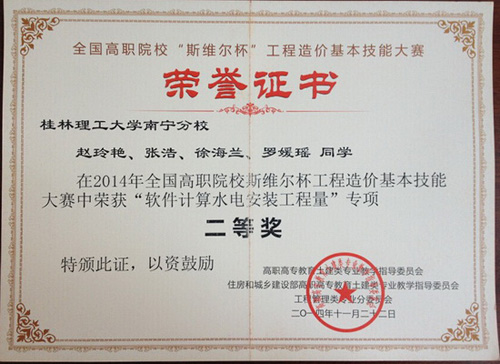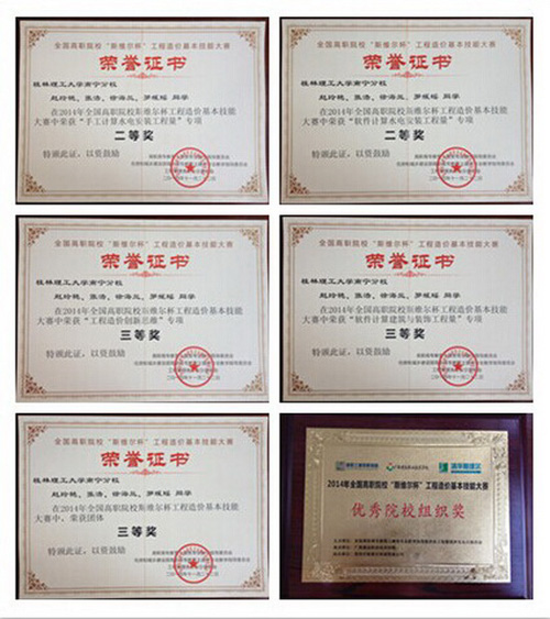 日前,2014年全国高职院校“斯维尔杯”工程造价基本技能大赛在广西建设职业技术学院举行。南宁分校学子分别在“手工计算水电安装工程量”专项和“软件计算水电安装工程量”专项比赛中荣获二等奖;在“工程造价创新思维”专项和“软件计算建筑与装饰工程量”专项比赛中荣获三等奖;此外,分校还荣获了团体三等奖和“优秀院校组织奖”荣誉称号。 本次大赛共有来自全国20多个省、直辖市、自治区的63支代表队,共252名队员参赛。比赛包括工程造价创新思维、手工计算工程量、软件计算工程量等三项内容。为做好学生参赛的组织、指导等工作,分校土木系在比赛前专门安排指导教师负责制定训练方案,对参赛学生进行了专业的指导,为比赛取得优异成绩奠定了良好的基础。