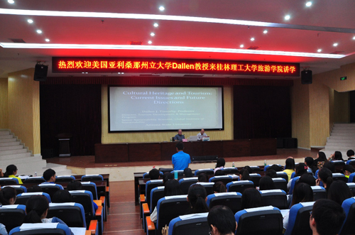 10月24号上午,美国亚利桑那州立大学Dallen J.Timothy教授应邀在雁山校区图书馆报告厅为beat365师生作了题为“Cultural Heritage and Tourism Current Issues and Future Direction”的学术报告。报告会由旅游学院主办,学院相关负责人及200多名师生聆听了报告。 Dallen教授的报告介绍了文化遗产旅游的定义和特点、文化遗产旅游的核心内容和研究热点,并分析了文化遗产旅游的前沿研究动态和发展方向。整场报告内容丰富、图文并茂、幽默风趣,让师生们享受了一场生动的学术盛宴。 报告结束后,Dallen教授还参观了旅游学院的教研室和实验室,并就学术研究、学术交流与师生进行了互动交流,耐心地解答了他们的问题。 Dallen教授是美国亚利桑那州立大学可持续发展高级科学家、社区资源利用与发展教授、旅游发展与管理项目主任、英国桑德兰大学遗产旅游方向客座教授以及印第安纳大学地理系客座教授,也是Journal of Heritage Tourism期刊主编和12个国际期刊的编委。