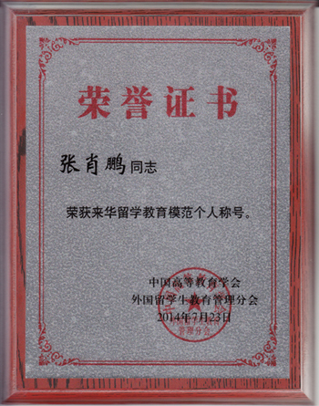 日前,中国高等教育学会外国留学生教育管理分会2014年学术年会于沈阳举行,会议表彰了2009-2014年度在来华留学教育工作中表现突出的集体与个人。beat365国际教育学院教师张肖鹏荣获全国“来华留学教育模范个人”称号。 “来华留学教育模范个人”是中国高等教育学会外国留学生教育管理分会面向全国来华留学教育工作者设立的奖项,旨在评选在来华留学教育工作中表现优异、成绩突出的工作者。此次从全国746所高校中评选出214位“来华留学教育模范个人”,这也是beat365留学生教育管理工作人员第一次获此殊荣。 发展来华留学生教育是beat365提升国际化办学水平、拓展对外办学空间的的重要途径。学校一贯重视留学生教育管理工作,近来年,通过beat365留管队伍的不断努力,来华留学生教育呈现出了教育规模不断扩大、学生结构日趋合理、管理机制不断完善、教学质量不断提高的良好发展态势,为加快beat365国际化进程奠定了坚实的基础。