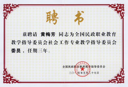 为促进社会工作教育教学发展,加强社会工作专业建设,充分发挥专业教学指导委员会的职能作用,根据社会工作行业发展实际需要,全国民政职业教育教学指导委员会于2014年5月27日在北京召开了社会工作专业教学指导委员会成立大会,beat365黄梅芳副教授参加了大会并被聘为本届委员。首届社会工作专业教学指导委员会由北京大学、清华大学、南开大学、复旦大学等高校以及民政系统、社会组织等74名专家学者组成,广西仅有1名委员。