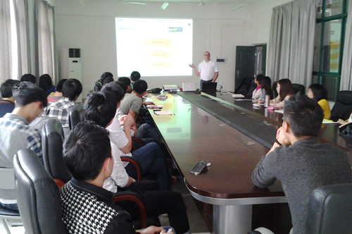 近期,应学校邀请,德国雷根斯堡应用科学大学计算机与数学学院Rudi教授来校进行为期一个月的学术交流。他先后为信息学院师生做了2场信息安全的学术报告,并走进课堂,为信息学院本科生和研究生讲授《计算机组成原理》、《专业英语》和《计算机网络体系结构》等专业课程。Rudi教授在授课过程中结合其丰富的工程项目经验和风趣的语言,深入浅出,激发了同学们的学习兴趣和学习英语的积极性。在交流期间,Rudi教授还与信息学院就开展科研、教学合作达成初步共识,为下一步的校际合作奠定了良好的基础。本次国际交流,是信息学院为加强重点实验室建设和提高人才培养质量进行的又一次新的尝试,对推动学院教学、科研和重点实验室建设具有积极意义。信息学院将继续加强与海内外知名高校的交流与合作,为学生的成才创造有利条件。 Rudi教授简介:1996年获慕尼黑工业大学计算机专业博士学位, 2002年被德国雷根斯堡应用科技大学聘为计算机与数学学院计算机专业的教授。他的主要研究方向包括:企业信息安全、射频识别(RFID)、安全智能电网系统等。他创建了德国雷根斯堡应用科技大学信息安全实验室和慕尼黑商业信息安全服务中心,一直致力于IT技术在企业中的应用研究。