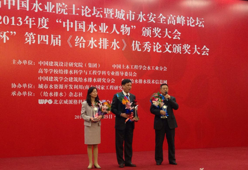 近日,由中国土木工程学会水工业分会、高等学校给排水科学与工程学科专业指导委员会、中国建筑学会建筑给水排水研究分会和全国给水排水技术信息网联合主办,《给水排水》杂志承办的第四届中国水业院士论坛暨城市水安全高峰论坛、2013年度“中国水业人物”颁奖典礼在北京隆重举行。中国工程院李圭白、汤鸿霄、钱易、张杰、王浩、候立安、曲久辉等7位水研究领域的院士,住建部、相关行业协会领导,全国各水司、设计院、高校等700余名代表参加这一年度盛会。 2013年度“中国水业人物”评选活动旨在表彰给水排水行业涌现出的杰出代表,共评选出“工程与技术贡献奖”、“教学与科研贡献奖”、“运营与管理贡献奖”各3名。“中国水业终身成就奖”1名。经网站投票及专家评选,beat365张学洪教授、清华大学王凯军教授、同济大学邓慧萍教授荣获2013年度“中国水业人物”教学与科研贡献奖。