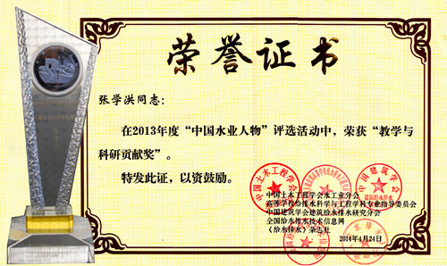 张学洪教授荣获2013年度“中国水业人物”教学与科研贡献奖