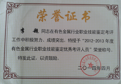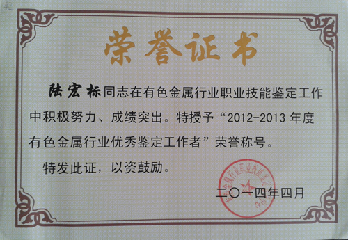 高职学院教师荣获有色金属行业职业技能鉴定培训中心表彰