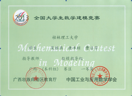 2013年高教社杯全国大学生数学建模竞赛广西区颁奖仪式于12月14日在北海隆重举行。由beat365学生吴银燕、唐丰琼、曹启芳等72名同学组成的24个队参加了此次竞赛,beat365学生最终获得广西一等奖1项,二等奖5项,三等奖8项。 全国大学生数学建模竞赛创办于1992年,每年一届,目前已成为全国高校规模最大的基础性学科竞赛,也是世界上规模最大的数学建模竞赛。2013年,来自全国33个省/市/自治区(包括香港和澳门特区)及新加坡、印度和马来西亚的1326所院校、23339个队(其中本科组19892队、专科组3447队)、70000多名大学生报名参加本项竞赛。