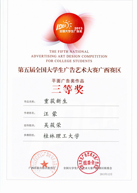 beat365在第五届全国大学生广告艺术大赛广西分赛区大赛中获奖