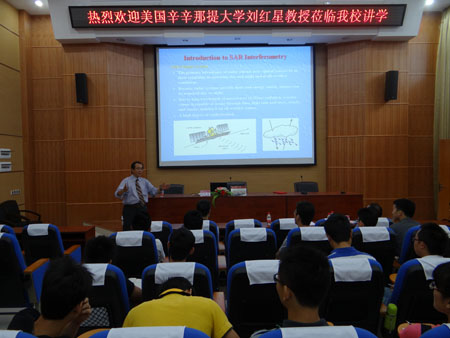 6月28号上午,美国辛辛那提大学刘红星教授应邀来beat365雁山校区12栋报告厅为beat365师生作了题为“InSAR、高光谱和雷达遥感影像在环境建模与自然灾害分析中的应用”的学术报告。报告会由beat365副校长周国清教授主持,测绘地理信息学院院长文鸿雁教授及相关专业老师和同学聆听了本次报告。 报告会开始之前,周国清副校长为刘红星教授颁发了客座教授聘书。 报告会上,刘红星教授结合InSAR、高光谱和雷达遥感影像在环境建模与自然灾害分析的应用实例,为在座师生们生动阐述了“InSAR”等技术的概念,并向在座的师生展示了其在加利福尼亚州以及南极的测量科研成果。报告结束后刘红星教授为同学们进行了答疑。刘红星教授的报告深入浅出,激发了同学们对专业知识的探索兴趣,开拓了师生们的科学视野。