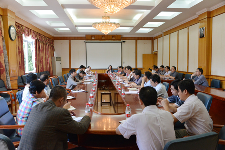 5月20日下午,陈学军副校长在学校教八楼会议室主持召开 “十二五”广西高校重点学科申报工作推进会。科技处相关负责人,各学院院长、分管科研副院长参加了会议。 陈学军副校长就“十二五”广西高校重点学科申报工作的建设目标、建设原则、申报名额、申报条件等进行了说明,同时强调各申报单位要高度重视,结合文件的要求以及时间节点,精心组织申报工作,确保工作取得实效。 会议上,各学院相关负责人汇报了拟申报学科的工作情况,同时与会人员还对申报工作的其他相关事项进行了讨论。