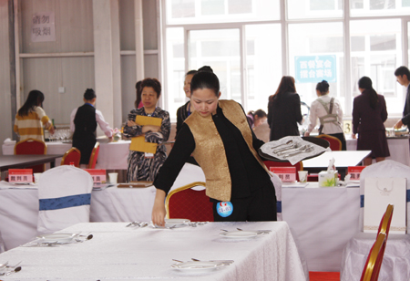刘雪露同学在西餐摆台比赛现场