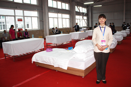 李秋同学在中式铺床比赛现场