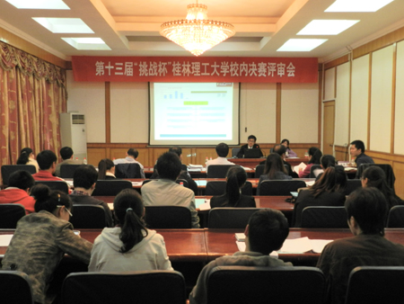 4月26日—27日,第十三届“挑战杯”全国大学生课外学术科技作品竞赛beat365官方网站校内决赛评审会在屏风校区教八栋三楼会议室顺利举行。本次决赛评审会分为哲学社会科学作品和自然科学、科技发明作品两场进行,邀请到16名来自多个专业学科的专家老师担任评委,学校党委副书记赵君出席了哲学社会科学类作品评审会。 经过初赛、复赛的选拔,全校共有25支参赛队伍最终进入决赛评审环节。评审会以答辩形式进行,首先由各参赛队通过PPT展示,对作品的研究思路,研究目的,主要成果、创新点及应用价值等进行阐述;随后,由评委进行提问,进一步了解作品的完成状况与使用前景,并提出了相应的意见和建议。最后,评委根据作品的可行性、创新性、完成情况和实用性等进行评分。 4月28日中午,由校团委、科技处、教务处和研究生处等部门组成的学校竞赛组织协调机构在雁山校区科技楼二楼会议室对参赛作品的进一步完善及申报工作进行了培训。