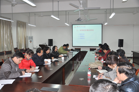 近日,环境学院在雁山校区教12楼407会议室召开学院2013年工作促进会,学习学校2013年度工作会议精神,研讨学院本年度工作要点。学院党政领导班子成员、教研室(实验室)正副主任、全体正高职称教师等参加会议。 会上,曾鸿鹄院长组织全体参会人员学习了2013年学校年度工作会议内容,并结合环境学院工作实际对张学洪书记和解庆林校长讲话精神进行了深入解读,要求全院上下认真贯彻执行学校工作部署,将工作任务落实到人,落实到事,加速推进学院发展。全体参会人员就教学、科研、学科建设、国际交流与合作、校园文化建设、学生工作管理等展开了热烈讨论,纷纷为学院的发展出谋划策,各教研室(实验室)主任还结合实际情况提出了教研室(实验室)2013年工作要点。通过深入讨论,环境学院明确了2013年要着力推进“五大工程”建设,即“科研能力提升工程”、“教师队伍推进工程”、“学生外语能力强化工程”、“毕业生就业能力拓展工程”、“校园环境文化培育工程”,明确要进一步规范管理,通过推行“教师个人科研工作责任制”、“专职教师office hours坐班制”等规章制度提升执行力建设。