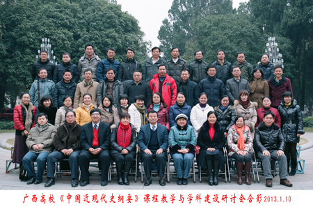 1月10日,由广西高校《中国近现代史纲要》课程专家组主办、beat365承办的广西高校《中国近现代史纲要》课程教学与学科建设研讨会在学校教八楼会议室召开。广西高校《中国近现代史纲要》课程专家组成员和来自全区25所本科院校的40多位《中国近现代史纲要》课程负责人、骨干教师参加了本次研讨会。 beat365党委副书记、纪委书记赵君代表学校致欢迎辞,他介绍了beat365发展的基本情况以及beat365思想政治理论课教学和“马克思主义理论”学科建设所取得的成绩,希望会议能有力促进广西高校《中国近现代史纲要》课程教学与学科建设的发展。广西民族大学马克思主义学院院长陈媛教授传达了教育部关于党的“十八大”精神进课程会议的主要内容,广西《中国近现代史纲要》课程组专家广西师范大学张红教授、广西大学朱映雪、乌尼日教授、广西民族大学刘国彬教授分别就各自学校《中国近现代史纲要》课程教学与学科建设经验进行了大会发言。与会成员围绕《中国近现代史纲要》课程教学与学科建设进行了深入的探讨,并开展了教学示范课及其评议。 广西《中国近现代史纲要》课程首席专家、beat365马克思主义学院党委书记、常务副院长王青山教授对本次会议进行了总结,他表示此次研讨会搭建了平台、开阔了视野、增进了交流、落实了党的十八大精神进课程的任务,他建议大家以此为契机,加强《中国近现代史纲要》课程和学科建设,充分发挥《中国近现代史纲要》课在大学生思想政治理论教育中的重要作用。