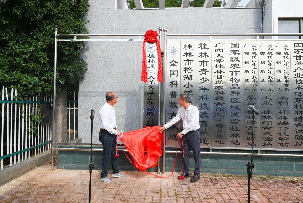 为深入贯彻落实中共中央、国务院和教育部关于劳动教育的指导意见和实施要求,加快构建德智体美劳全面培养的教育体系,把劳动教育全面纳入人才培养全过程,培养学生正确的劳动价值观和良好的劳动品质,10月13日下午,学校劳动教育中心与桂林市农业科学研究中心共建的beat365官方网站大学生劳动教育实践基地揭牌仪式在桂林市农业科学研究中心举行。学校学生工作部(处)副部(处)长、大学生就业与职业规划指导中心主任迟国东、桂林市农业科学研究中心副主任梁志鹏出席活动。学工部(处)相关负责人、各学院学工组长、劳动教育专项研究团队成员及50余名学生代表参加活动。