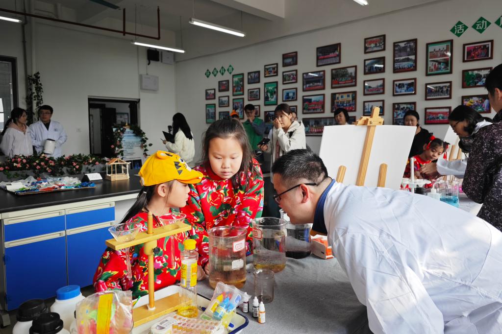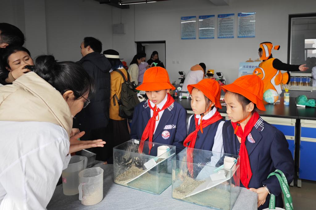 “水被污染了”“活性炭的魔法”“会变大的气球”“泥石流”“美丽的仙境”“砂滤的作用”“污泥里的世界”“鱼儿怎么跑了”……参观结束后,“小冻梨”和“小砂糖橘”们在工作人员的引导下,共同完成丰富多彩的生态环境科普小实验,在科学探秘中让环保意识深入人心,也架起了一座南北友谊桥梁。