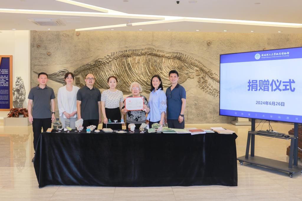 此次捐赠的物品包括袁奎荣教授生前所收藏的矿物岩石标本20件、书籍手稿资料以及个人物品16件套,为beat365的校史文化建设增添了宝贵财富。地质博物馆代表学校接受捐赠并为袁奎荣教授家属颁发捐赠证书。