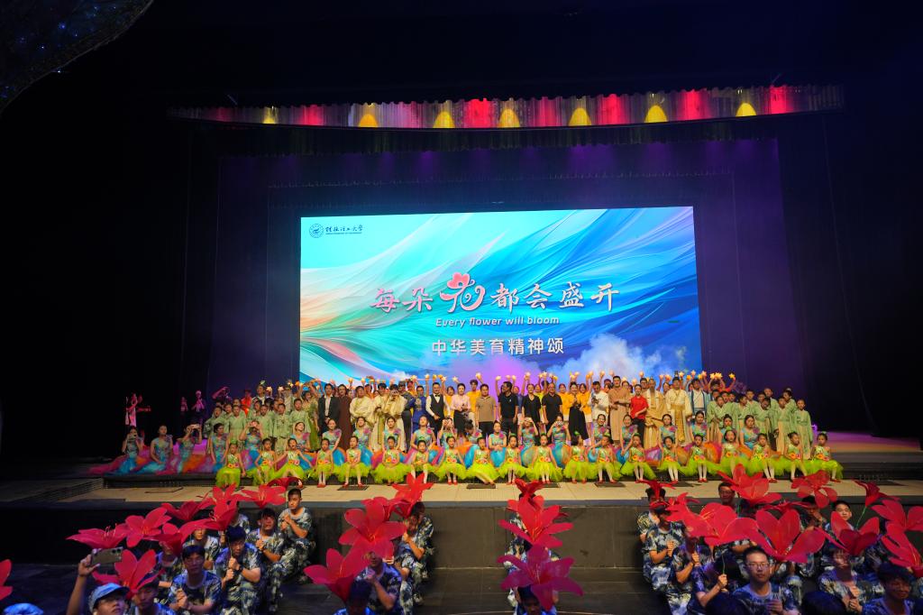 为贯彻落实教育部《关于全面实施学校美育浸润行动的通知》文件精神,以浸润作为美育工作的目标和路径,大力弘扬中华美育精神,近日,学校原创沉浸式美育特色实践成果“每朵花都会盛开”中华美育精神颂2024级“本科新生启航计划”专场演出在桂林融创桂秀剧场精彩上演。