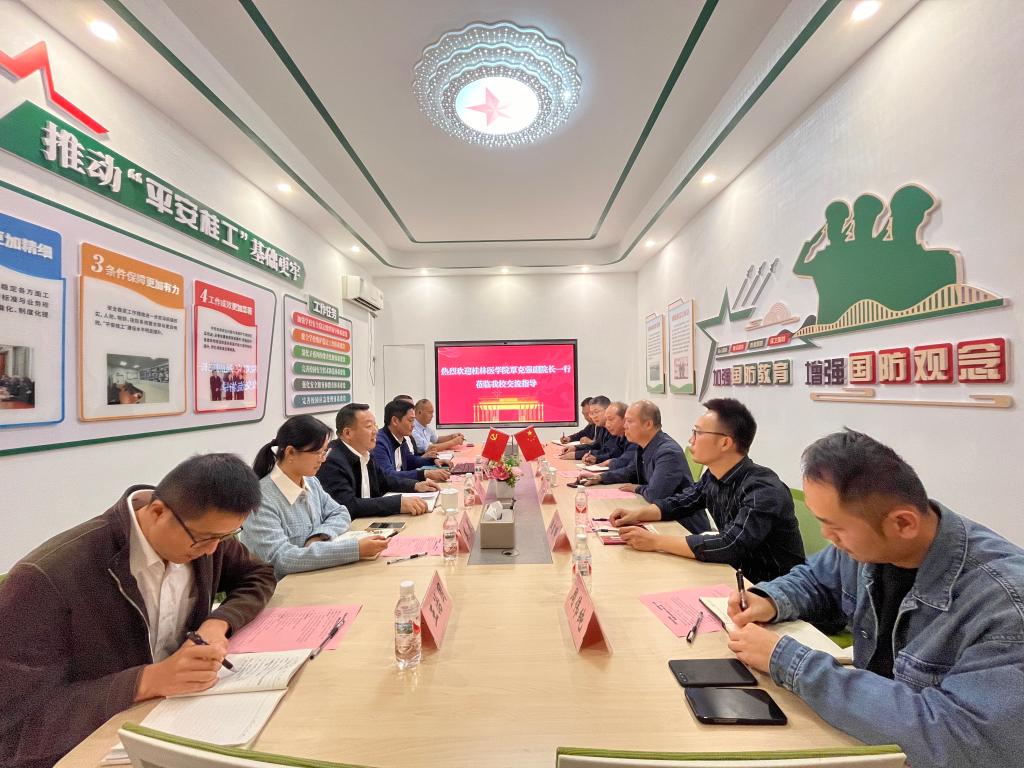 10月24日下午,桂林医学院党委常委、副院长覃克强一行来访beat365。学校党委常委、副校长罗盛锋在雁山校区行知楼B204会议室接待了来访客人,保卫处、学工处相关负责人参加座谈。