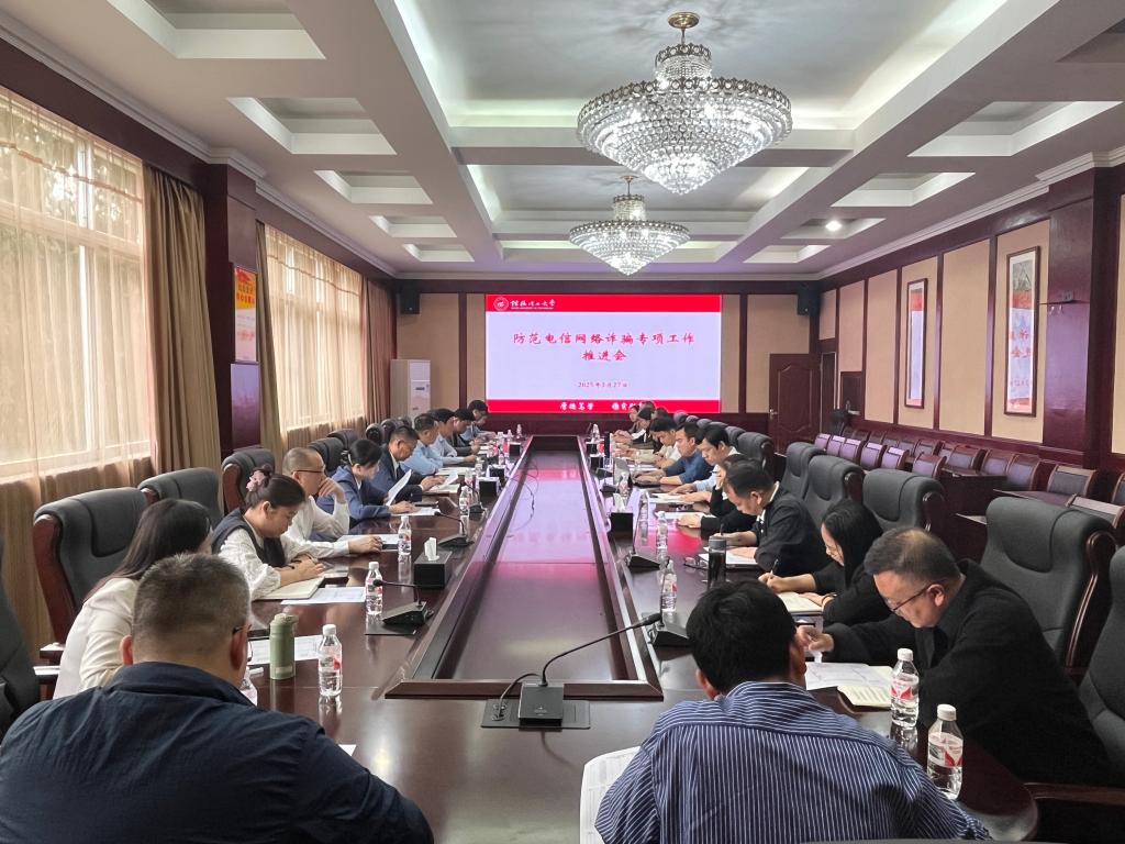 为进一步抓好学校防范电信网络诈骗工作,降低案发率,3月27日上午,学校在屏风校区教八楼第三会议室召开防范电信网络诈骗专项工作推进会。学校党委常委、副校长罗盛锋出席会议。教工部、学工部、研工部、保卫处、离退处、社区办、国际教育学院、继续教育学院、各学院相关负责人参加会议。